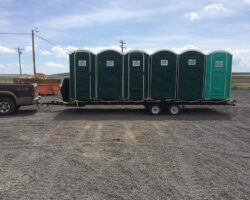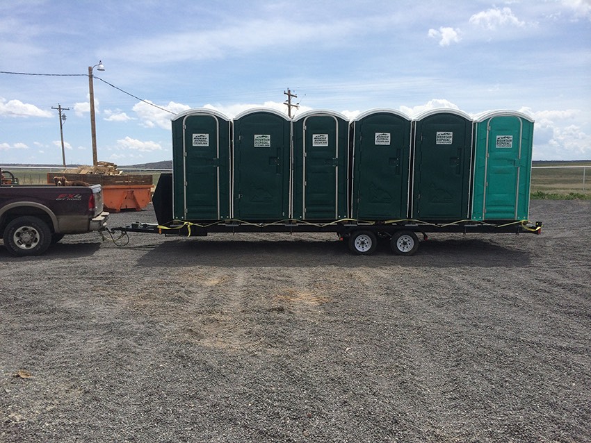 - Toilet on a Trailer. These are standard units mounted to a trailer so it can move along with the job site. You can pick these units up and haul them with you if you are outside the service area. This option is perfect for remote job-sites and hard-to-access areas. This allows you to pick up a toilet and bring it to your site. Automatic lights available upon request.